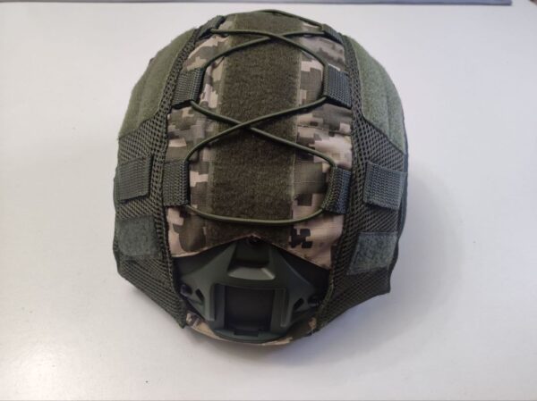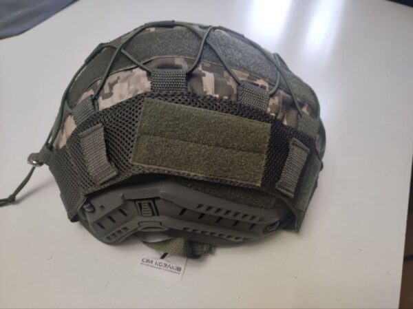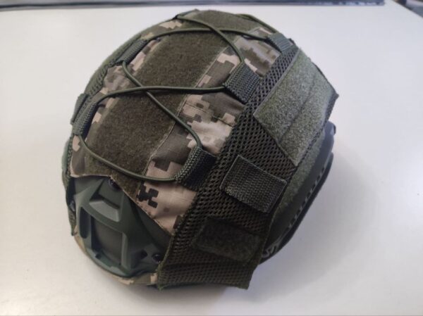 Чохол підходить на всі розміри шоломів, резулюється і фіксується липучками по довжині і затяжками по ширині. Оснащений стропами для маскування , липучками для кріплення символіки і патчів. Виготовлений з тканини Ріпстоп, 3D сітка. Доступний в кольрах – піксель, мультикам