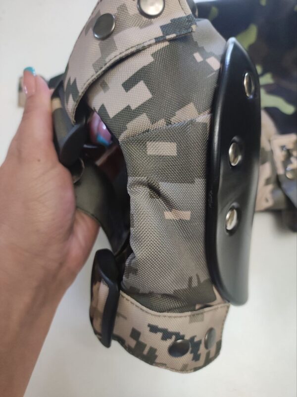 Тактичні наколінники використовують у бою, на тренуваннях та при заняттях спортом, коли точками опори стають – коліна. Також підійдуть для роботи в садівництві і при ремонтних роботах. Наколінники дозволяють ставати на коліна навіть на бите скло і запобігають травмувань колінної чашечки, особливо на рельєфній і бетонній поверхнях.